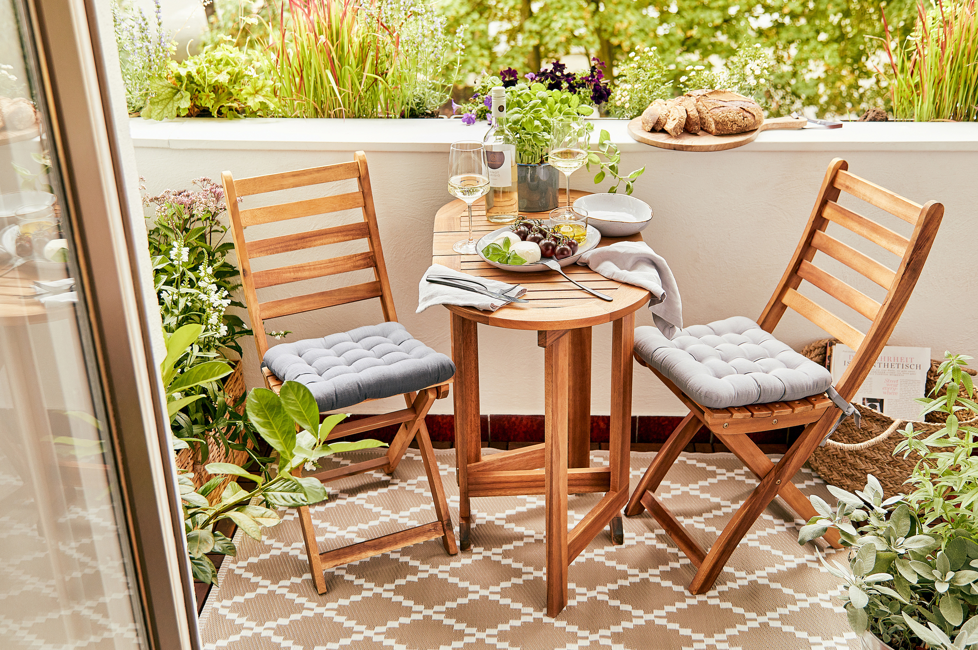 Und falls du statt eines Gartens nur einen kleinen Balkon hast, findest du in unserem Sortiment auch platzsparende und wetterfeste Balkonmöbel sowie Deko und Beleuchtung für innen und außen.