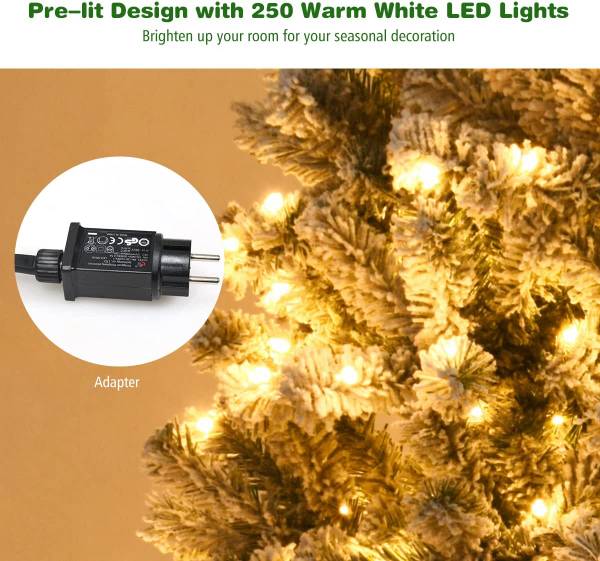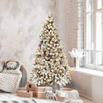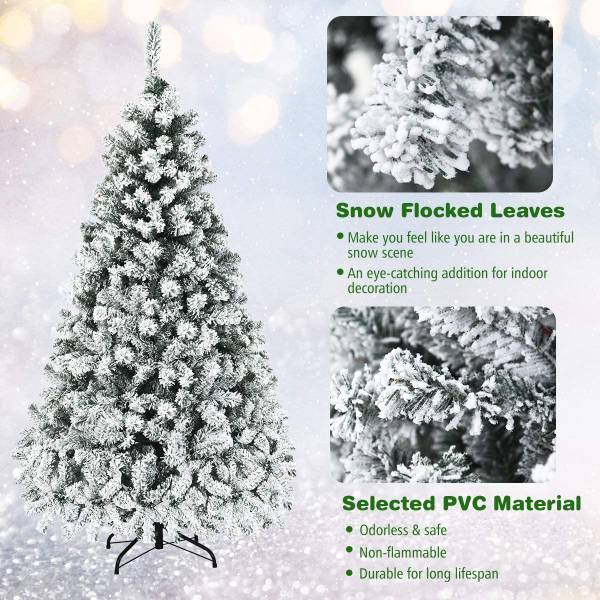 Mit 600 Zweigen und schneebedeckten Nadelnsieht dieser Baum fast wie ein echter aus dem Winterwald aus. Er besteht aus nicht entflammbarem PVC, das druckbeständig, formfest und langlebig ist. Der eiserne Ständer stützt den Baum stabil, sodass er nicht umkippt. Außerdem sind die Äste durch Scharniere mit dem Stamm verbunden, so dass sie in kurzer Zeit mühelos angebracht werden können. Die 250 LED-Leuchten sorgen für ein warmes und wohliges Gefühl im Raum. Der Baum ist perfekt für Ihr Zuhause, Büro, Geschäft, etc.