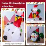 Mit einer Höhe von 210 cm ist dieser aufblasbare Polarbär mit einem Weihnachtsmannhut und einem Schal gekleidet, begleitet von Santa Claus und einem Pinguin mit Geschenktüten. Das festliche Design sorgt für weihnachtliche Stimmung in Ihrem Zuhause.