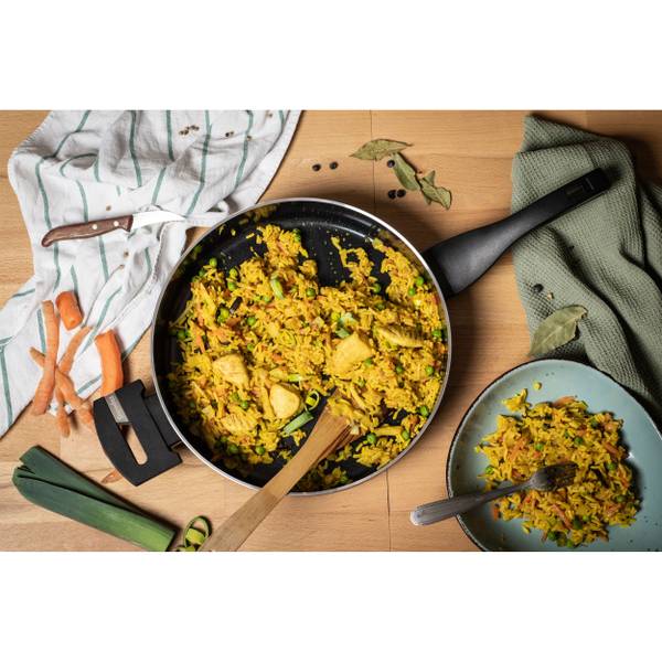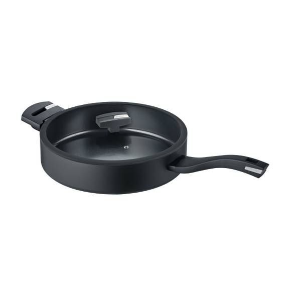 • Glasdeckel: Der Glasdeckel mit Silikonrand liegt ohne lästiges Klappern auf dem Rand der Pfanne.