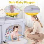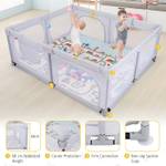 Unser großer Baby-Laufstall ist speziell für Kinder im Alter von 0 bis 3 Jahren zum Sitzen, Krabbeln, Gehen, Stehen und Spielen konzipiert. 4 Zugringe und 50 Spielbälle sorgen für grenzenlosen Spielspaß. In der Aufbewahrungstasche können Sie Ihre Gegenstände aufbewahren. Der Spielzaun verfügt über Türen mit Reißverschluss und eine umlaufende Netzwand, um die Sicherheit des Kindes zu gewährleisten. Des Weiteren bietet die doppelseitige Babymatte mit rutschfester Oberfläche den Kindern mehr Krabbelspaß und zusätzliche Sicherheit. Dieser Baby-Laufstall besteht aus hochwertigem Oxford-Gewebe und robusten Metallrohren und ist langlebig und stabil genug, um eine lange Lebensdauer zu gewährleisten. Wir statten ihn außerdem mit 4 Saugnäpfen aus, um ihn stabil zu halten. Zu guter Letzt gibt es von uns noch eine tragbare Tasche zur einfachen Aufbewahrung.