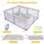 Unser Laufstall verfügt über eine Baby-Spielmatte mit doppelseitigen Mustern und einem Lineal zur Aufzeichnung des Wachstums, welche die kognitiven Fähigkeiten Ihres Babys fördert. Dank der rutschfesten Oberfläche können Kinder sicher krabbeln oder laufen. Außerdem besteht die Matte aus XPE-Material, das sicher und kinderfreundlich ist. Nach Gebrauch kann sie in eine schmale Form gebracht werden.