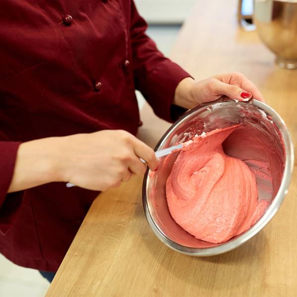 - Schüsseln leeren, Teig oder Glasuren gleichmäßig verteilen mit dem Spatel