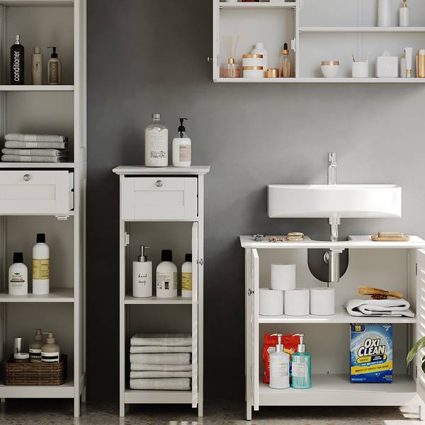LIEFERUMFANG: Bad Spiegelschrank, Waschbeckenunterschrank, Midischrank, Badschrank, Montageanleitung, Montagematerial.