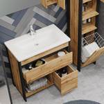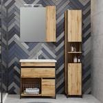 - Badset bestehend aus 1 Waschtisch inklusive Keramikbecken, 1 Hochschrank inklusive Wäschekippe & 1 Spiegelschrank inklusive Beleuchtung & Schalter