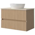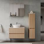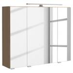 - Badset bestehend aus 1 Waschtisch inklusive Aufsatz-Keramikbecken, 1 Midischrank & 1 Spiegelschrank inklusive LED-Aufsatzleuchte