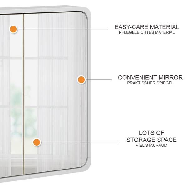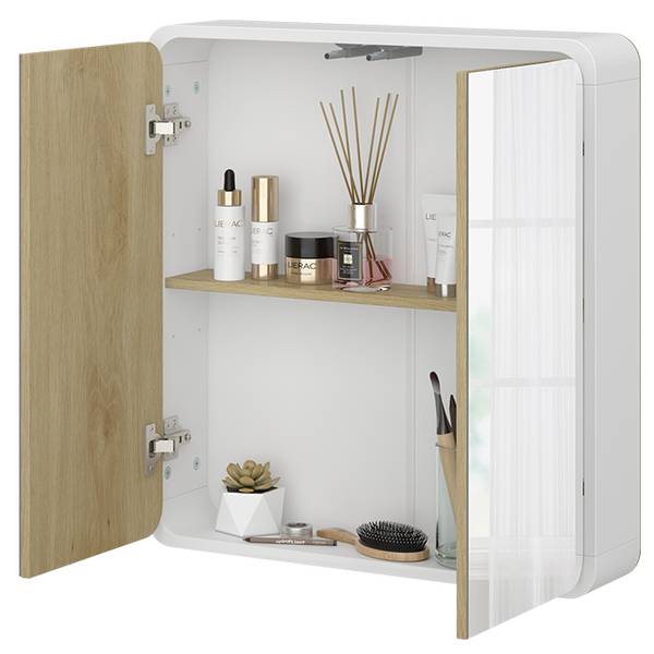 Der Badezimmerspiegelschrank Arla kombiniert Stil und Funktionalität auf elegante Weise. Mit integriertem Regal bietet er ausreichend Stauraum für all Ihre Pflegeprodukte, während der großzügige Spiegel Ihr Badezimmer optisch vergrößert und für mehr Helligkeit sorgt. Jeden Morgen können Sie sich dank des Badezimmerspiegels von Ihrer besten Seite sehen und perfekt für den Tag vorbereiten. Bringen Sie mit dem Badezimmerspiegelschrank Arla Luxus und Praktikabilität in Ihr Badezimmer und starten Sie jeden Tag mit einem Lächeln im Gesicht.