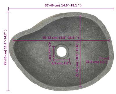 Hinweis: Flussstein ist ein Naturprodukt, daher können Farb- und Formabweichungen auftreten. Bitte sehen Sie sich die Produktfotos als Beispiele an. Das tatsächliche Produkt ist möglicherweise heller oder dunkler als auf den Fotos, und manchmal enthält das Produkt eine Mischung aus Farben. Bei der Bestellung mehrerer Waschbecken kann nicht garantiert werden, dass Größe, Form und Farbe identisch sind.