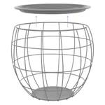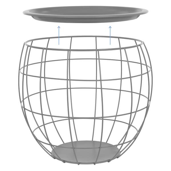 Die tellerförmige Tischplatte aus Metall ist lackiert, solide und hochwertig verarbeitet. Die Metallkörbe sind pulverbeschichtet.