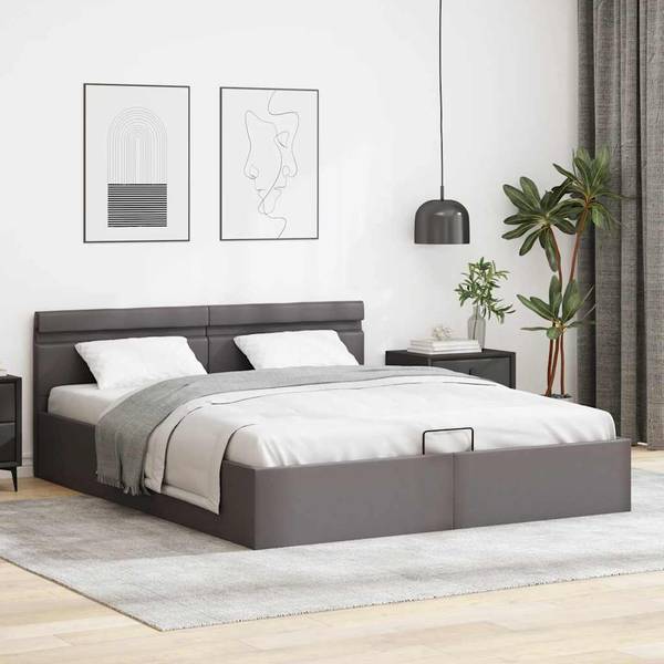 Mit unserem hydraulischen Kunstlederbett verleihst du deinem Schlafzimmer im Handumdrehen eine beeindruckende moderne Note! Dieses Doppelbett zeichnet sich durch ein schlichtes und dennoch stilvolles Design sowie eine solide Konstruktion aus, da es aus starkem und robustem MDF gefertigt ist.