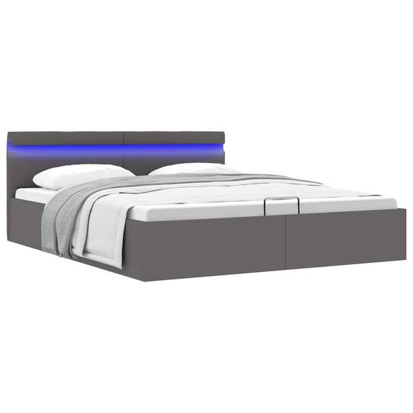 Der pulverbeschichtete Stahlrahmen und die Sperrholzlatten tragen zur Stabilität und Haltbarkeit des Bettes bei. Dieses Stauraumbett ist mit glänzendem Kunstleder bezogen, sieht einladend aus und ist leicht zu pflegen. Dieses Bettgestell ist für eine Matratze von 180 x 200 cm geeignet. Es ist mit LED-Beleuchtung ausgestattet, die sich leicht einstellen lassen, um eine individuelle Lichtshow zu erzeugen. Du kannst die Modi, die Farben und die Helligkeit individuell anpassen, um das Ambiente deines Innenraums zu verbessern. Dieses Produkt ist einfach zu montieren.