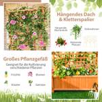 Schaffen Sie eine perfekte Wachstumsumgebung für Ihre schönen Pflanzen! Unser hohes Hochbeet bietet ausreichend Pflanzfläche für die Kultivierung verschiedener Pflanzen. Das hängende Dach und das Kletterspalier eignen sich zum Aufwachsen von Efeu, Prunkwinden, Weinreben, Glyzinien oder anderen Kletterpflanzen. Und im großen Pflanzkasten können Sie Blumen, Gemüse, Obst, Kräuter usw. pflanzen. Sie können auch einige Dekorationen oder Hängekörbe am Gitter anbringen. Dank der durchdachten Wasserableitungskonstruktion müssen Sie sich keine Sorgen über Staunässe oder Austrocknung machen.