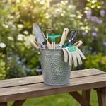 - Kleine Metalleimer zur Aufbewahrung von Gartenwerkzeug
