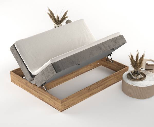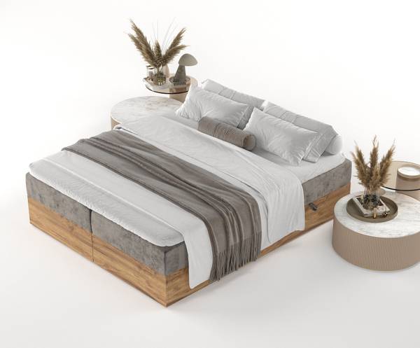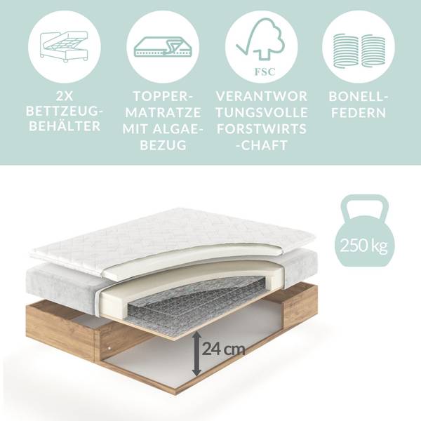 • Zwei praktischer Stauraum im Bettkasten (25 cm Hohe)