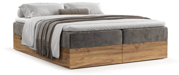 Die Basis des Bettes besteht aus einer strapazierfähigen Schichtstoffplatte in der Farbe Eiche Wotan, die den modernen Charakter des gesamten Bettes noch unterstreicht.