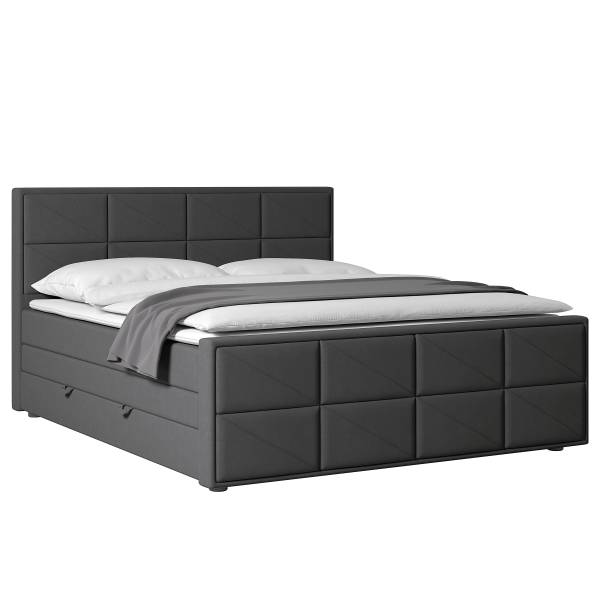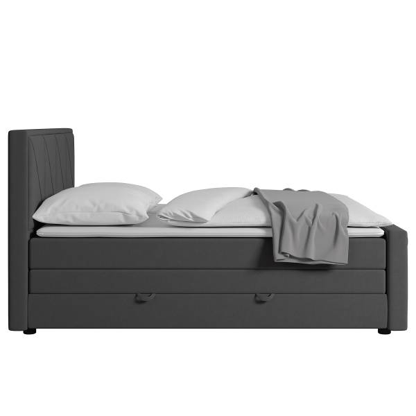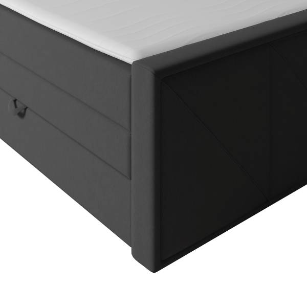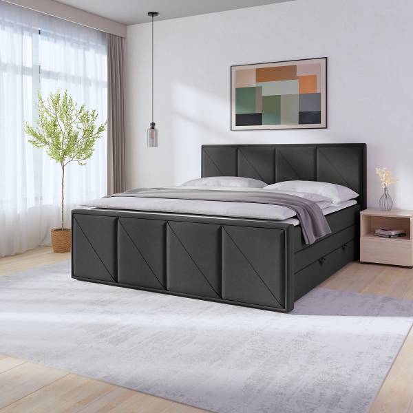 - Lieferumfang: Boxspringbett mit Bettkasten, inkl. Topper. Ohne Dekoration