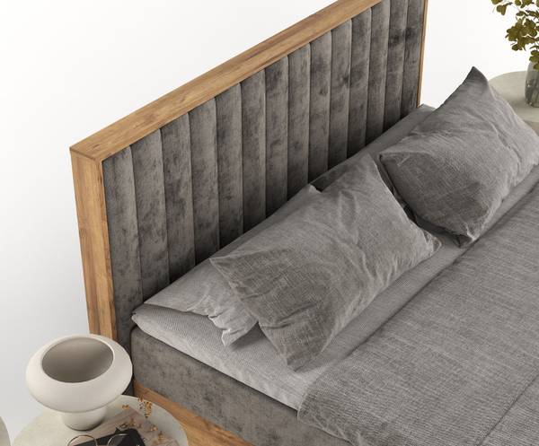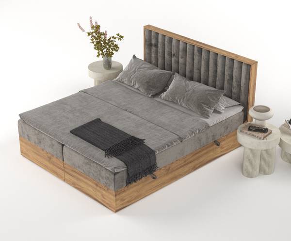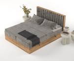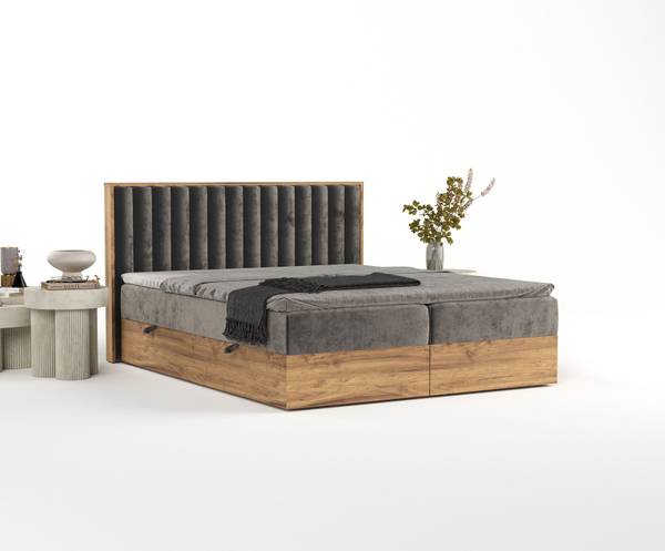 Das äußerst stilvolle Boxspringbett Komorebi besticht durch sein modernes und universelles Design. Das gepolsterte Kopfteil sorgt für einen angenehmen Liegekomfort und ist mit vertikalen Nähten verziert.