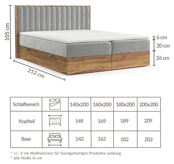 • Zwei praktischer Stauraum im Bettkasten (25 cm Hohe)