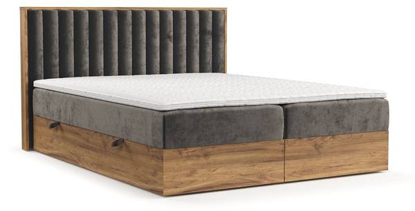 Die Basis des Bettes besteht aus einer strapazierfähigen Schichtstoffplatte in der Farbe Eiche Wotan, die den modernen Charakter des gesamten Bettes noch unterstreicht.