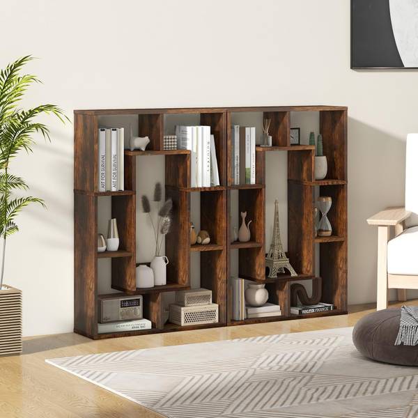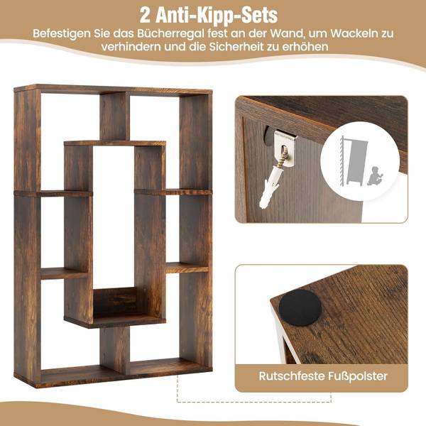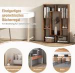 Das geometrische Bücherregal ist eine ästhetisch ansprechende Ergänzung für Ihr Zuhause! Mit insgesamt 7 Fächern hilft Ihnen das durchdacht gestaltete Bücherregal dabei, einen organisierten und funktionalen Raum zu schaffen. Sicherheit steht an erster Stelle, weshalb diese Bodenvitrine mit 2 Kippsicherungen ausgestattet ist. So können Sie das Bücherregal fest an der Wand befestigen, um ein Wackeln zu verhindern und die Sicherheit zu erhöhen. Zusätzlich zu seinen praktischen Eigenschaften ist dieses Bücherregal ein Blickfang für verschiedene Orte. Es kann als gewöhnliches Bücherregal, Ausstellungsregal oder Raumteiler in Ihrem Zuhause und Büro verwendet werden.