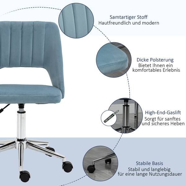 ● Die verstellbare Sitzhöhe des Drehstuhls kann an Ihren Schreibtisch und Ihre Vorlieben angepasst werden