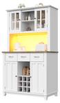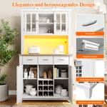 Dieser hohe Küchenschrank verfügt oben über 6 Ablagefächer zur Aufbewahrung von Besteck, Weingläsern und anderen Küchenutensilien sowie eine große Arbeitsfläche und Schränke darunter zur Aufbewahrung einer Kaffeemaschine, eines Toasters und anderer Küchenutensilien. In der Mitte befindet sich ein Weinregal, das Platz für 9 Flaschen Wein bietet. Drei Schubladen mit Aluminiumgriffen sorgen für eine praktische Aufbewahrung von Küchenutensilien oder Besteck.