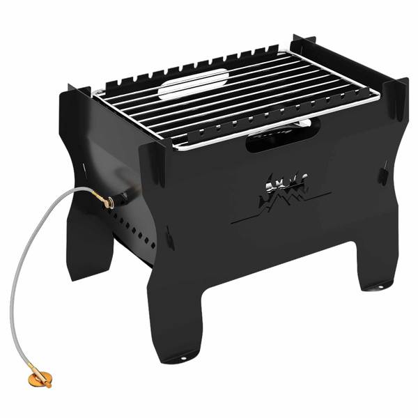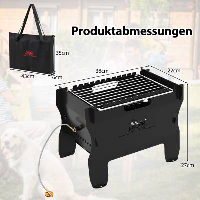 Konstruiert für Bequemlichkeit und Flexibilität, bietet dieser tragbare Grill einen abnehmbaren Gasschlauch und Brenner für Butannutzung, sowie die Option, auf Holzkohle, Holz oder Brennpellets umzuschalten, um Ihren Geschmack und Ihre Umstände zu erfüllen. Der Grillrost von 28 x 19 cm ist ideal zum Kochen einer Vielzahl von Speisen, von Kebabs bis Gemüse, ergänzt durch eine hervorragende Luftzirkulation, die einen effizienten Brennstoffverbrauch und gleichmäßiges Garen sicherstellt. Aus hochwertigem Metall gefertigt, verspricht dieser Grill dauerhafte Zuverlässigkeit, wohin auch immer Sie gehen. Schnell aufzubauen und in seine praktische Tragetasche zu verpacken, ist dieser Dual-Fuel Grill Ihr perfekter Begleiter im Freien für unvergessliche Erlebnisse.