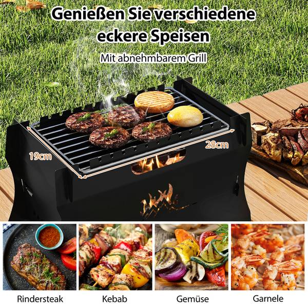 - 【Breite Anwendung】Einfach zu montieren und zu demontieren, kommt dieser kompakte Grill mit einer Tragetasche für praktische Aufbewahrung und Transport, ideal für Camping, Picknicks und andere Outdoor-Veranstaltungen.