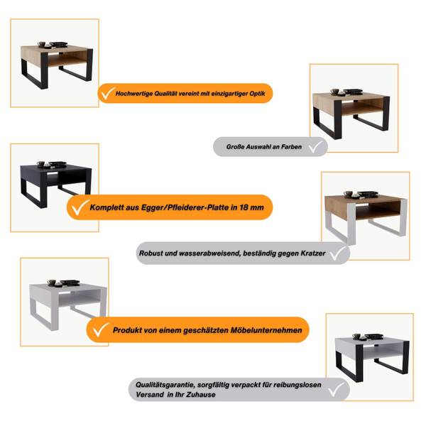 STYLE: Karo Couchtisch ist ein Möbelstück, das in keinem Wohnzimmer fehlen darf. Schlicht und klassisch fügt sich der Couchtisch perfekt in moderne Einrichtungen und minimalistische Designs Ihrer Einrichtung ein.
