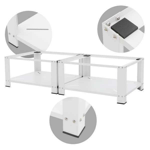 Erhöhe deine Waschmaschine und Trockner auf eine ergonomische Arbeitshöhe von 32 cm mit unserem 2er Set Waschmaschinen-Untergestellen. Dadurch wird das Beladen und Entnehmen der Wäsche komfortabler.