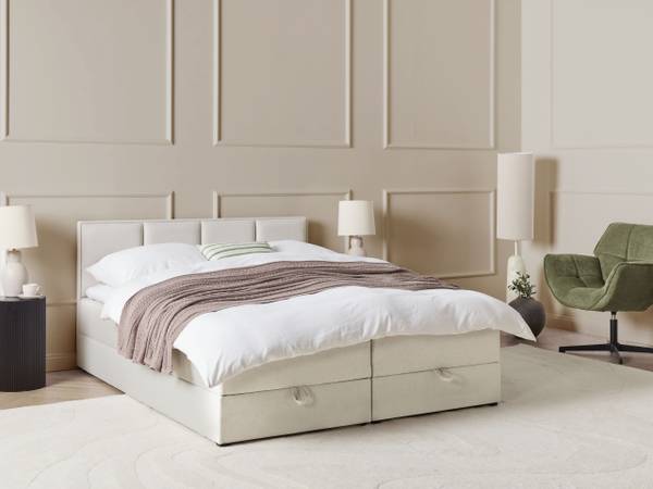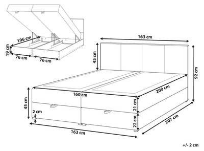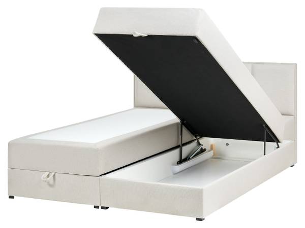 Feste und widerstandsfähige Matratze (Härtegrad H2), Ausgezeichneter Komfort durch gleichmäßige Gewichtsverteilung, Komfortable und breite Liegefläche, Die spezielle Beschichtung sorgt für eine einfache und effiziente Reinigung, Leichtes Öffnen des Bettkastens dank Gasdruckfedermechanismus