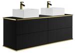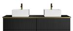 Möchten Sie Ihr Badezimmer aufwerten? Das Möbelstück KELIZA wird Ihren Wünschen entsprechen, indem es Ästhetik, Raffinesse und Funktionalität mit seinem Push-and-Pull-Öffnungssystem und seinen zwei geräumigen Schubladen verbindet. Es wird leicht einen Platz in Ihrem Badezimmer finden. Darüber hinaus verleihen die geriffelte Oberfläche und die goldfarbenen Akzente Ihrem täglichen Entspannungsbereich einen Hauch von Luxus.
