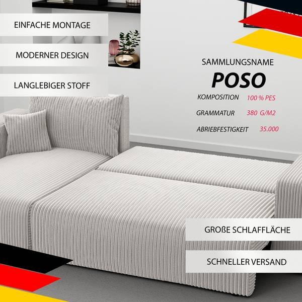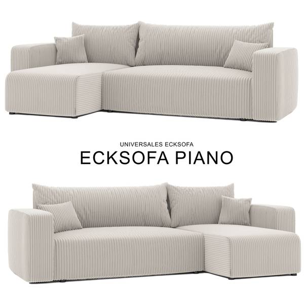 Das Ecksofa Piano begeistert mit ihrer proportionalen Konstruktion und klassischen Linien, die sich perfekt in verschiedene Einrichtungsstile einfügen. Trotz ihrer kompakten Form bietet sie stets ein hohes Maß an Komfort. Der weiche und strapazierfähige T-30-Schaumstoff des Sitzes bietet angenehme Unterstützung. Die Schlaffunktion ermöglicht eine einfache Umwandlung der Eckcouch in ein bequemes Bett. Die solide Konstruktion von dem Ecksofa basiert auf einem Holzgestell und einer Möbelplatte diese gewährleisten die erforderliche Steifigkeit und Stabilität. Abgerundet wird das Ganze durch minimalistische Kunststoffbeine, die dem Piano-Ecksofa Eleganz und Stil verleihen.