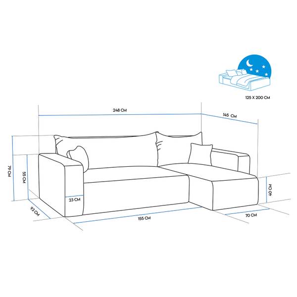 - Lieferumfang: 1x Ecksofa, Ohne Dekoration