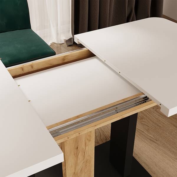 Der Esstisch Fenaro ist nicht einfach nur ein Möbelstück für Ihr Zuhause - er ist der Mittelpunkt für gemütliche Runden mit Familie und Freunden, an dem viele unvergessliche Momente geteilt werden. Mit seinem praktischen und stilvollen Design passt er perfekt in Ihr Wohnzimmer, Ihre Küche oder Ihr Esszimmer und wird so zum Herzstück Ihres Zuhauses. Der ausziehbare Esstisch bietet genügend Platz für gesellige Mahlzeiten und gesellige Abende. Wählen Sie aus verschiedenen Farben und Ausführungen, um Ihren persönlichen Stil widerzuspiegeln. Entdecken Sie mit dem Küchentisch Fenaro die Freude am gemeinsamen Essen und Beisammensein.