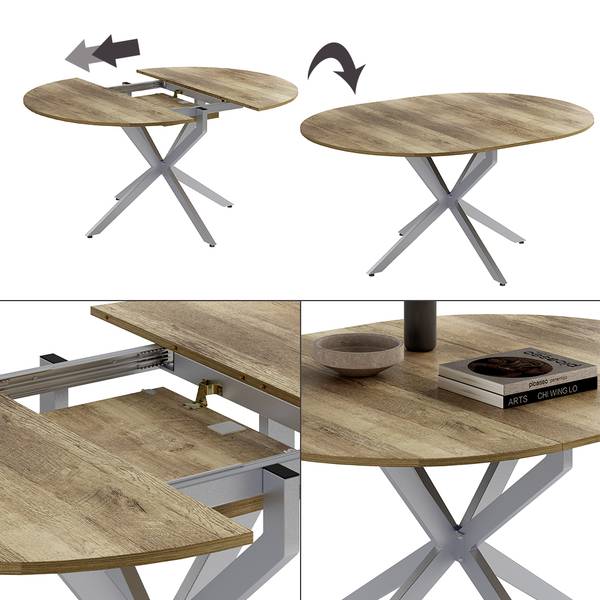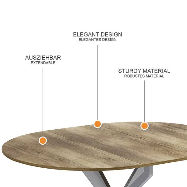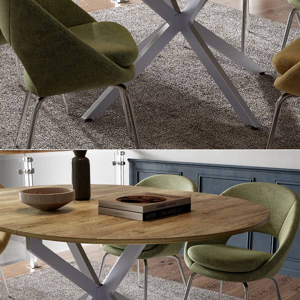 Der Esstisch Loyd ist der perfekte Begleiter für Familienessen und gesellige Runden mit Freunden. Durch seine runde Form und das moderne Design passt er perfekt in jedes Esszimmer und ist gut kombinierbar mit anderen Möbeln. Besonders praktisch ist die ausziehbare Funktion des Tisches, die ihn flexibel in der Länge macht – somit findet jeder Gast einen Platz. Ob für das morgendliche Frühstück oder das opulente Festessen - der Esstisch Loyd ist für jede Gelegenheit bestens geeignet und sorgt für eine entspannte Atmosphäre. Mit diesem Tisch wird jede Mahlzeit zu einem besonderen Erlebnis!