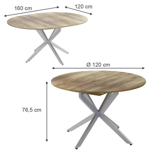 Ausgezogen: 160 x 76.5 x 120 cm (BxHxT)