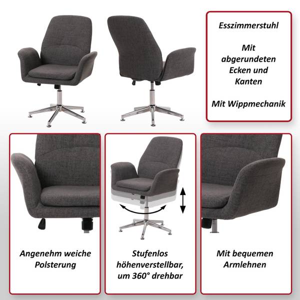 - Der Esszimmerstuhl K23 bietet dank Wippmechanik, stufenloser Höhenverstellung und 360°-Drehfunktion maximalen Komfort und Flexibilität. Die gepolsterten Armlehnen und die weiche Sitzfläche sorgen für ein bequemes Sitzgefühl, auch über lange Zeit.
