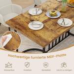 Dieser hölzerne Esstisch mit Metallrahmen misst 180 x 79 x 75 cm (L x B x H) und bietet bequem Platz für 6-8 Personen bei Familienfeiern, Dinnerpartys oder alltäglichen Mahlzeiten. Die Größe des Tisches stellt sicher, dass jeder genügend Bewegungsfreiheit hat, um seine Mahlzeiten zu genießen, ohne sich eingeengt zu fühlen. Gestützt auf robuste Metallrohre und mit einer 4 cm dicken Tischplatte gewährleistet der Tisch eine Tragfähigkeit von bis zu 135 kg und ist somit für den täglichen Gebrauch geeignet. Die Ästhetik des Tisches ist ebenso ansprechend und kombiniert eine verwitterte Holzfurnieroberfläche mit einem schlanken Metallrahmen in einem stilvollen, geschwungenen Design. Die Kombination aus rustikalem Charme und modernem Design macht ihn zu einem vielseitigen Stück, das verschiedene Dekorationsstile und Räume ergänzt.