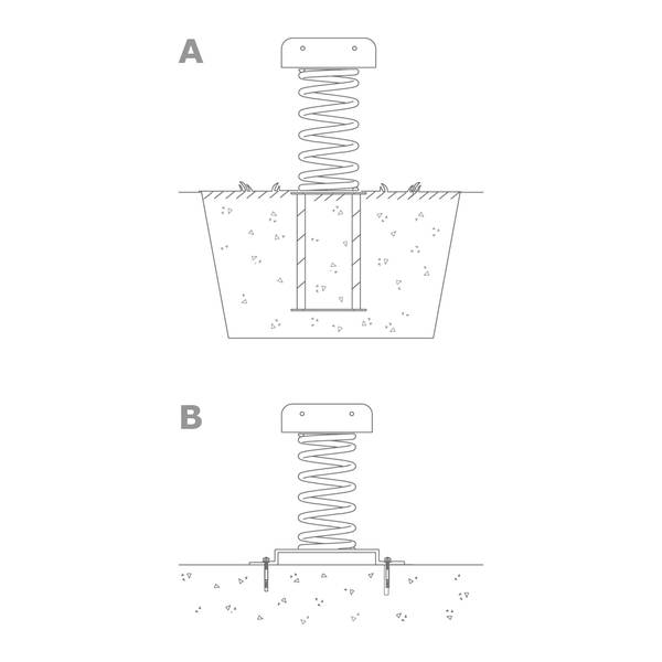 - Feder aus pulverbeschichtetem Stahl mit feuerverzinkter Stahlverankerung zum Einbetonieren oder Verschrauben