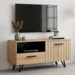 Die großzügige Ablagefläche des Lowboards bietet ausreichend Platz für Ihren Fernseher. Darunter befindet sich ein offenes Ablagefach, das ideal für die Aufbewahrung von Mediengeräten wie DVD-Playern oder Spielekonsolen ist. Der Integrierte Kabeldurchlass auf der Rückseite sorgt für eine ordentliche Kabelführung sowie ein aufgeräumtes Gesamtbild, während alle wichtigen Geräte stets zur Hand sind.