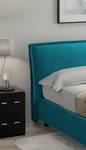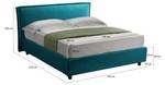 Qualität und DesignDas gepolsterte Bett in azurblauem Stoff verleiht deinem Raum einen modernen Touch. Die solide Struktur aus legiertem Holz und Metall verleiht Stabilität und Langlebigkeit. Mit den schwarzen Füßen in einer Höhe von 10 cm bietet das Bett eine perfekte Harmonie zwischen Eleganz und Funktion.