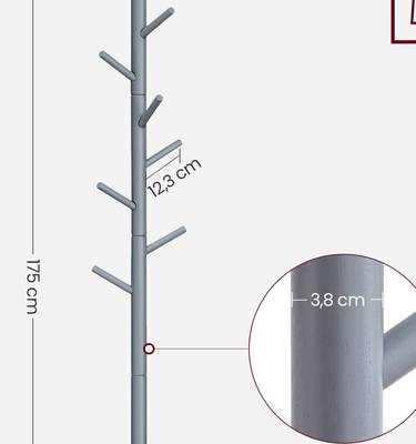 [Platzsparend und belastbar] Dieser 47 x 47 x 175 cm große Jackenständer passt auch in einen engen Flur und bietet eine hohe Belastbarkeit (pro Haken bis 3 kg). An den 8 Haken können Mäntel, Taschen und Schals aufgehängt und in Reichweite gehalten werden
