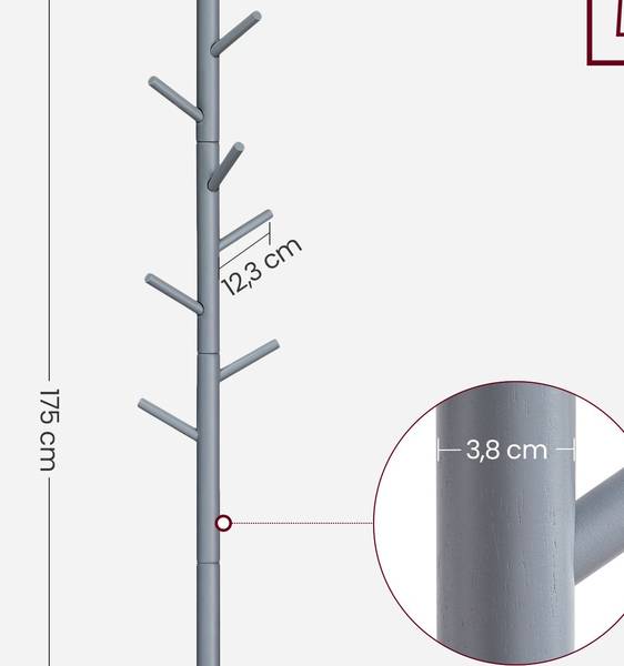 [Massivholz & langlebig] Dieser Garderobenständer ist aus 3,8 cm starkem Massivholz gefertigt. Das macht ihn robust und garantiert eine lange Lebensdauer; außerdem verleiht die graue Farbe Ihrem Zuhause einen frischen Touch