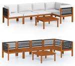 Das Gartensofa besticht durch seine aufwendig gearbeiteten Rückenlehnen aus geflochtenem Seil und verleiht jedem Außenbereich eine elegante Note. Das Gartenset besteht aus massivem Akazienholz, einem tropischen Hartholz, das wetterbeständig und äußerst langlebig ist. Dank der Ölbehandlung erhält das Gartenmöbel-Set eine warme Farbe und ist leicht zu reinigen und zu pflegen. Im Lieferumfang sind außerdem dick gepolsterte Sitz- und Rückenkissen für ultimativen Lounge-Komfort enthalten.