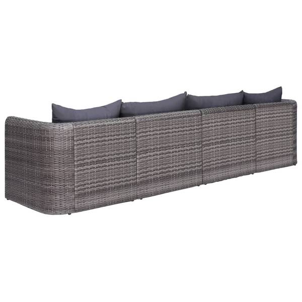 Die Lieferung umfasst 1 linkes Sofa-Eckelement, 1 rechtes Sofa-Eckelement, 2 Sofa-Mittelstücke, 4 Rückenkissen und 4 Sitzkissen. Hinweis: Wir empfehlen, das Set bei Regen, Schnee und Frost abzudecken.