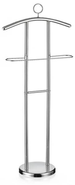 Entdecken Sie den stummen Diener GÜNTHER, eine elegante und funktionale Lösung für Ihr Schlafzimmer. Dieser moderne, in Chrom lackierte Kleiderständer bietet nicht nur einen stilvollen Kleiderbügel, sondern auch eine praktische Hosenablage. Seine chromfarbenen Elemente verleihen ihm ein edles Aussehen. Zusätzlich bietet der Kleiderbutler Ablagemöglichkeiten für Accessoires wie Gürtel und Mützen. Der runde Standfuß garantiert Stabilität und Langlebigkeit.