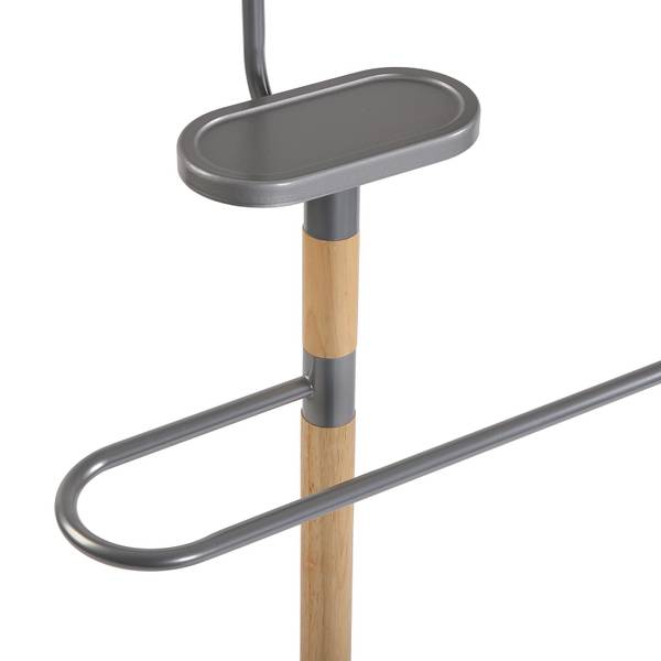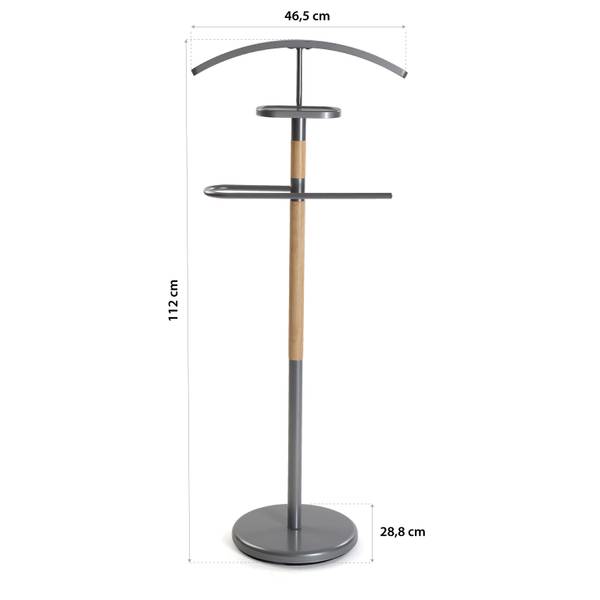 Herrendiener für den Eingangsbereich, die Diele, das Schlafzimmer oder den begehbaren Kleiderschrank. Unser Kleiderständer ist aus Metall mit Details aus Bambusholz ist ein ideales Accessoire für jedes Zuhause. Sein Design und seine Größe machen es einfach, multifunktional und leicht zu reinigen. Nützlich, einfach zu installieren und verleiht Ihrem Raum eine andere Note