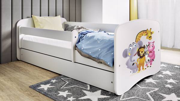Das Kinder-/Jugendbett ("140/70 cm) in Weiß mit dem Motiv „Zoo“ von Kocot Kids bringt eine moderne, gemütliche Atmosphäre in ein Kinder- oder Jugendzimmer. Mit seinem markanten Design und dem geschwungenen Kopf- und Fußteil schafft es eine beruhigende Umgebung, die durch die neutrale Farbgebung noch verstärkt wird.