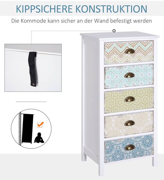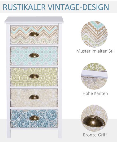● 5 Schubladen der Aufbewahrungskommode mit Metallgriffen bieten viel Stauraum